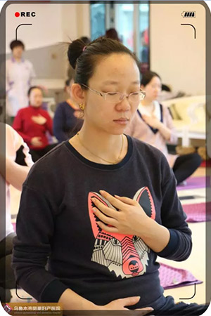 “宝宝,我是妈妈,你可以听得到吗?今天妈妈和很多阿姨一起练习瑜伽,一起放松,妈妈很舒适,你呢?是否也一样?……妈妈想要以最自然的方式迎接你的到来,你能和妈妈一起加油嘛~”