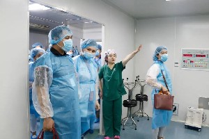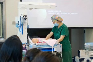 这个产程是整个分娩中最重要、关键的阶段。焦变妮护士长为在座的准爸妈们介绍分娩时医护人员所使用得专业一次性医疗“产包”,它会覆盖助产士全身,进行全方位消毒,做到真正的无菌接生。在准备完毕后,焦变妮护士长挨个为大家介绍一些常用的医疗器械,减少准妈妈们的陌生感和紧张感。