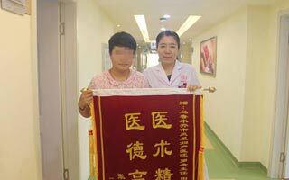 6月15日,凤凰妇产医院吴凤英院长、罗希主任、麻醉科等一起进行了这台手术,打开腹腔后,由于囊肿巨大,无法直接从腹腔中托出,在抽取其中的积液达1000毫升以后,才将其顺利切除。在全体医护人员和张女士的共同努力下,手术过程进展非常顺利,成功将囊肿切除。为了表达自己及家人的谢意,张女士特意给罗主任及悉心照顾她的医护人员送来了锦旗。