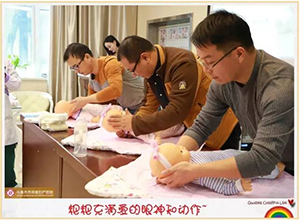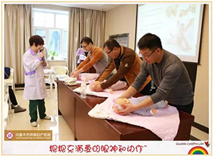 12月4日,凤凰妇产医院产房护士长焦变妮为各位如约而至的准爸妈送上《新生儿护理》课程。课程中,焦护士长不仅为准爸妈们详细介绍了新生儿的生理特点,还根据新生儿的特殊性教大家如何仔细、细心地去呵护宝宝的口腔、鼻部、耳部、四肢等。另外,对于广受热捧的“新生儿抚触”手法,焦护士长现场示范并带着准爸妈们现场体验。