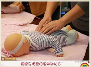 准爸爸们做抚触时的细腻、细心,无不诠释着对新生宝宝深深的爱~