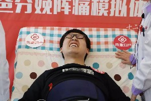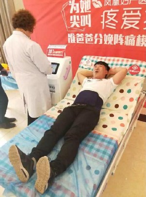当丈夫躺在产床上开始体验时,站在一旁的妻子和大家一样笑了起来。随着痛级的增加,起初笑着的她,看着丈夫越来越痛苦的表情不由得心疼起来。丈夫还在坚持着,妻子已红了眼眶。