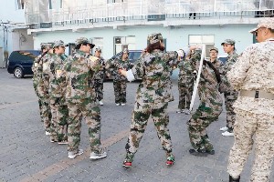 “向右看齐、身板挺直、小碎步踏起来、十个蹲起、十个俯卧撑!”随着教练一声声的命令下护士节拓展训练营拉开了序幕。现场所有的护士门分成了两队,开启激烈的竞赛环节。