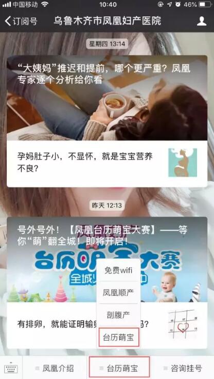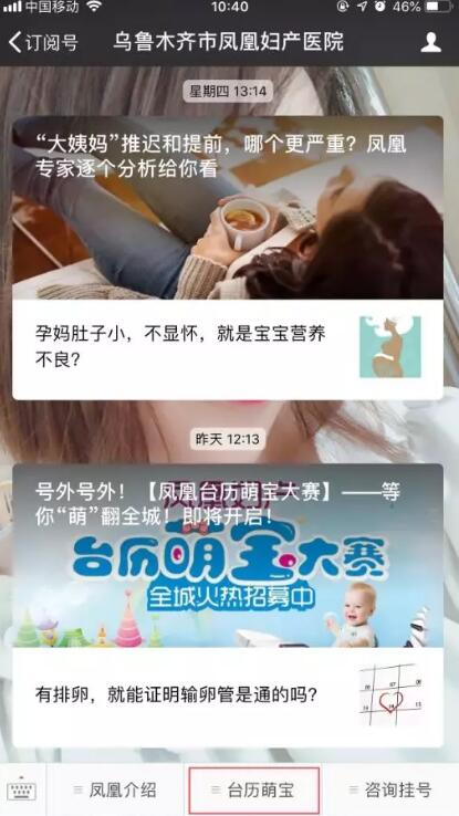 1、关注凤凰妇产医院微信公众号(账号:xjfhyy),关注后在公众号下方菜单中点击【台历萌宝】选项进入活动页面参与活动。