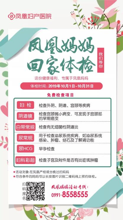 第四届“凤凰妈妈·回家体检”活动正式开启,只要是在凤凰妇产医院分娩的妈妈就可以领取这一份免费的体检福利。